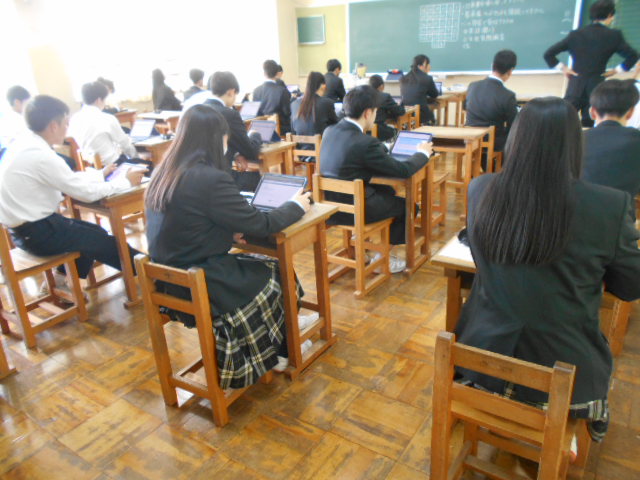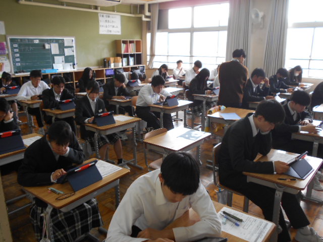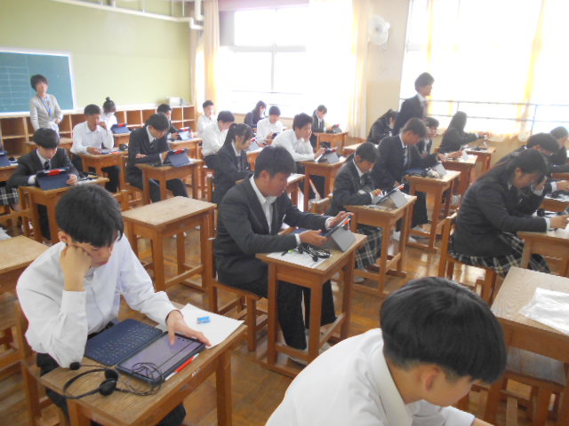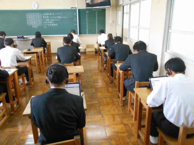 ヘッドセットを装着し、問題に向き合う3年生の集中した姿がありました。