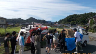 学校の様子 5年生、稲刈り ~実りの秋、真っ盛り~ 12日金曜日、5年生は総合や社会科の一環で、稲刈りを行いました。天候も曇り気味の下、地域の稲刈り先生黒崎様、谷口様2名の方より、刈り方、藁を使って束ね方、稲木への干し方等全て教えていただき、ちょうど2コマを使って上手に収穫できました。「良い... 2025.09.12 学校の様子