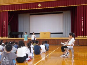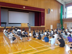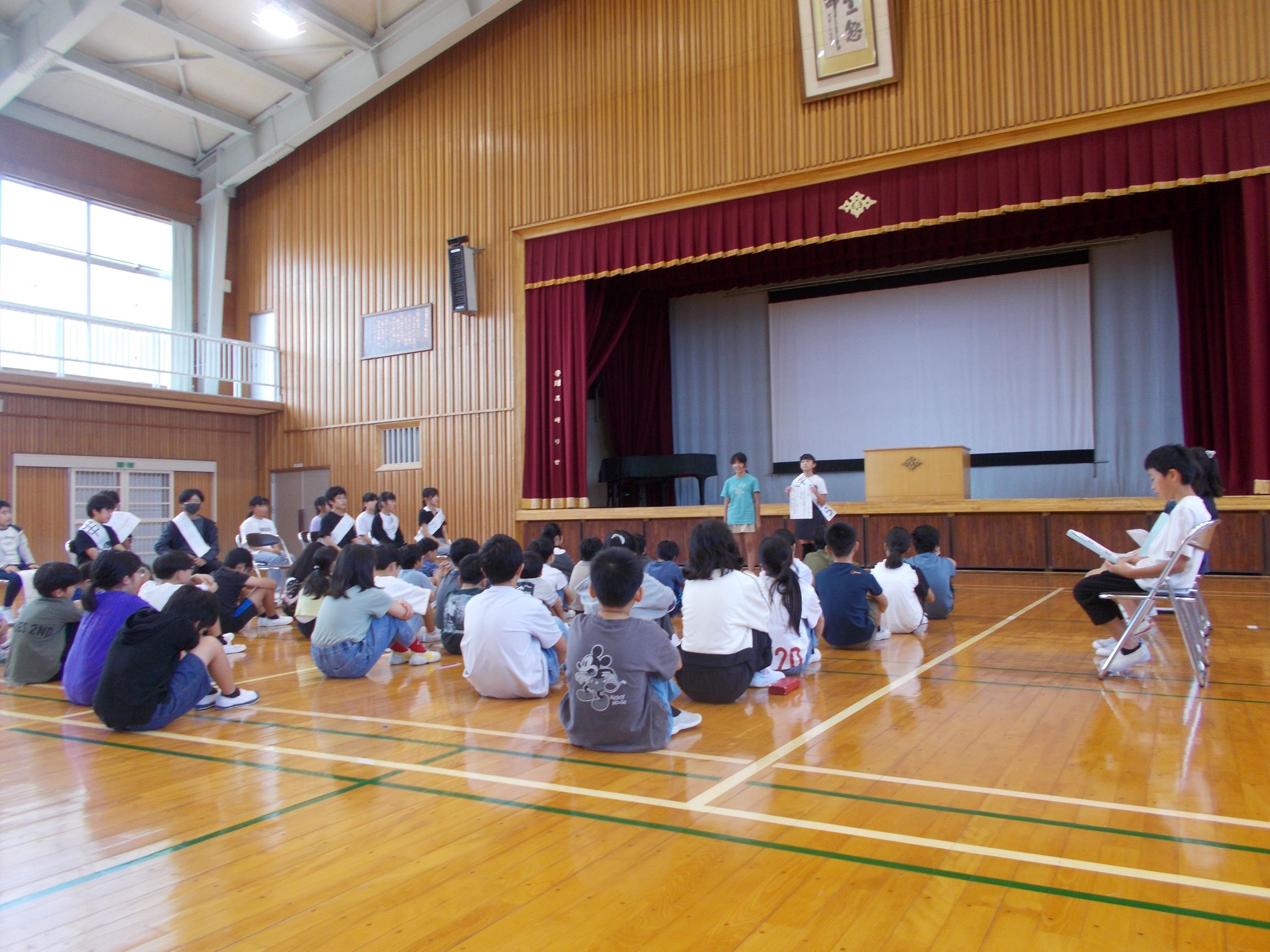 6日2時限目、本校伝統の立会演説会が行われました。演説者は、肩からタスキをかけ、公約文を手に持ち推薦者と共に、自分の考えを正面を向き正々堂々と発表しました。その内容は「笑顔あふれる学校にして幸せな気持ちにみんながなってほしい」「全校の意見を吸い上げ楽しめる取り組みをしたい」「あいさつあふれる学校にしたい」「さらに 久美っ子主役の学校にしていきたい」等など・・・。本校児童会は、児童会が中心になってあいさつ、遊び、行事等を率先して取り組んでいますが、この演説会でこうして堂々と公表することが大きな役目を果たしています。よき伝統です。