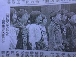 元気と言えば、この本(下記の写真)に「元気に歌う子ども達」の1枚の写真があります。めちゃくちゃ、大きな口を開けています。15年前の140周年記念式典での久美っ子です。久美っ子は代々昔から「元気で たくましく」過ごしています。