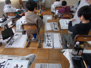 1月8日は書初め大会がありました。校長の校内放送の挨拶で始まり、「春の海」のBGMのもと、全校児童がそれぞれたくましく、勇ましく、凛々しい文字に1年の抱負や願いを込め丁寧に書き、年初の思いを温める良き場となりました。校内書初め展は13日~16日です。ご参観お待ちしています。