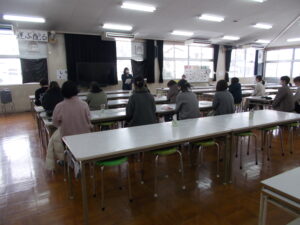 学校の様子23日金曜日は次年度入学予定の保護者様を対象とした入学説明会を行いました。大雪のため始業を遅らせ、かつ、除雪もままならない道路状況の中でしたが、わざわざ来校され、入学にあたっての留意点等を確認していただきました。次年度は14名の予定で皆さん揃って来校され、熱心にメモをとりながらお話を聞いてもらいました。あいにく体験入学や親のための応援塾は、今週の木曜日に延期になりましたが、次年度に向け受入準備を進めています。