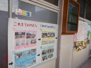 明日は授業参観です。お父さんお母さんが来校されます、それに向けて子ども達は一生懸命に作品を仕上げました。3階に展示したり、教室前、内、階段踊り場、職員室前等に掲示しています。楽しみにご参観いただけると幸いです。グラウンドも除雪され、駐車できます。お気をつけてご来校ください。