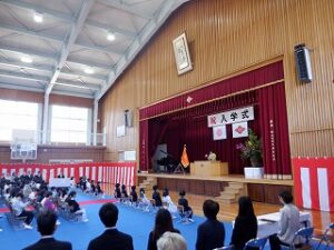 学校の様子澄み渡る青空の下、満開の桜が咲き誇り、花々が咲き乱れる爽やかな春の陽気に恵まれる中、本日、令和8年度の入学式が挙行されました。