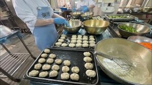 コロッケ、唐揚げなど、おかずは全て手作りです。りんごはうさぎの耳の飾り切りを調理員さんたちがしてくださいました。