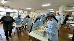 給食当番も、さすが各小学校のリーダーだったみなさんだけあって、とても上手にできています。