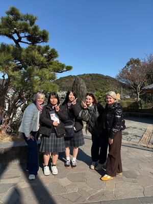 事前に準備した質問を10組以上の観光客の方々に聞くことができました。普段、AETのクラリサ先生以外の外国人の方と話す機会が少ない部員たちにとっては良い機会になりました。