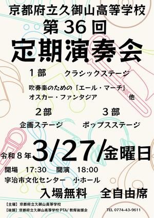 吹奏楽部は第36回定期演奏会を開催します。詳細は以下の通りです。