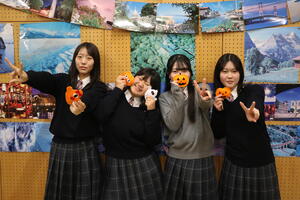 部員たちは2人1組のペアを組み、日本のキャラクター文化、日本の美術館、日本のメイク文化について、約2分間の英語プレゼンテーションを行いました。