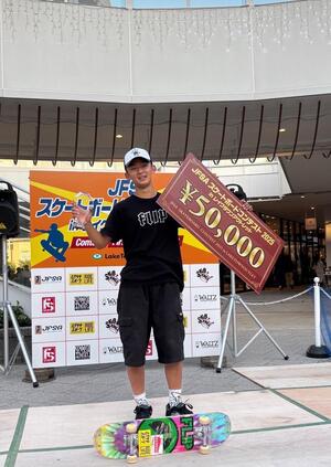 本大会は、日本フラットランドスケートボード協会(JFSA)が主催するコンテストで、トーナメント方式による対戦形式で行われました。川﨑さんは、日頃の練習の成果を存分に発揮し、頂点に輝きました。
