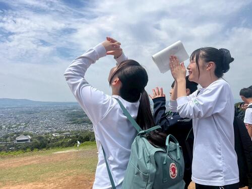 生徒たちは、広大な自然に触れ、若草山の景色を見渡し、ハイキングを楽しんでいました。さらにハイキングコースにて実施された謎解きゲームにも参加し、頭を悩ませながらも協力し、答えを導き出し、体力、思考力ともに鍛えられる校外学習となりました。