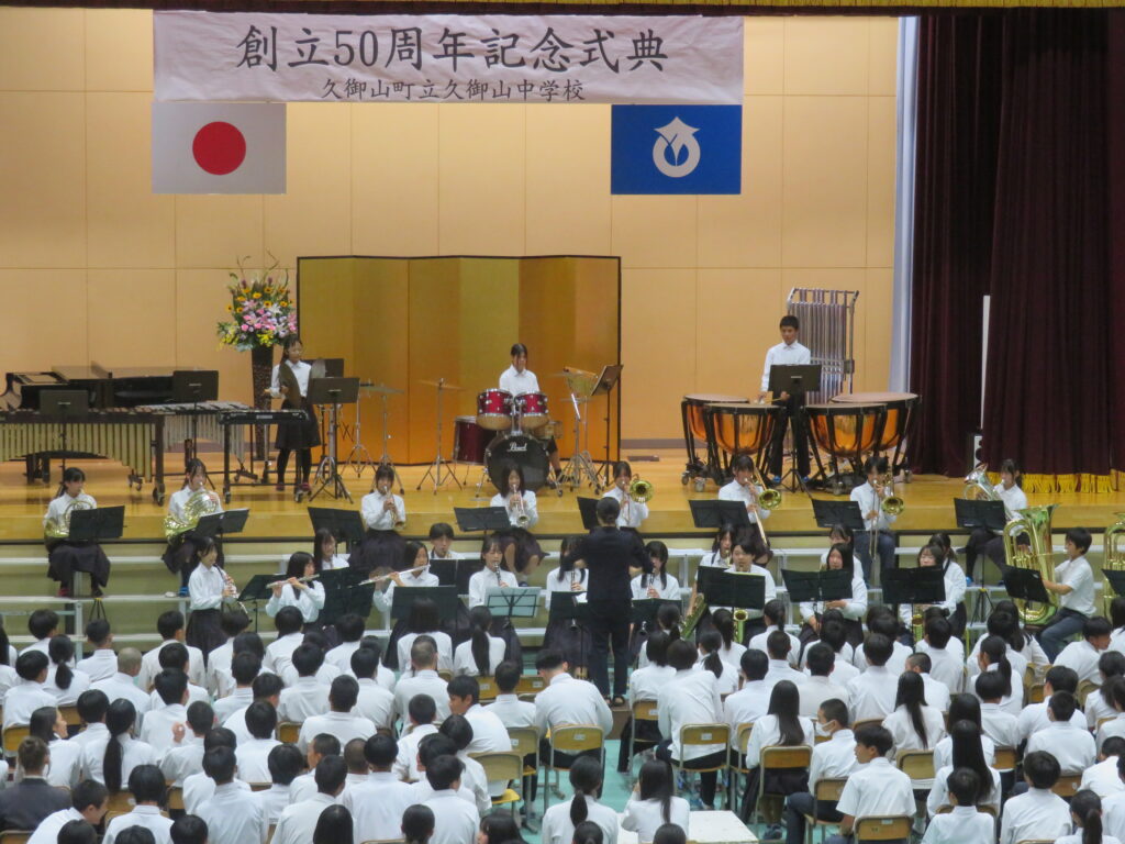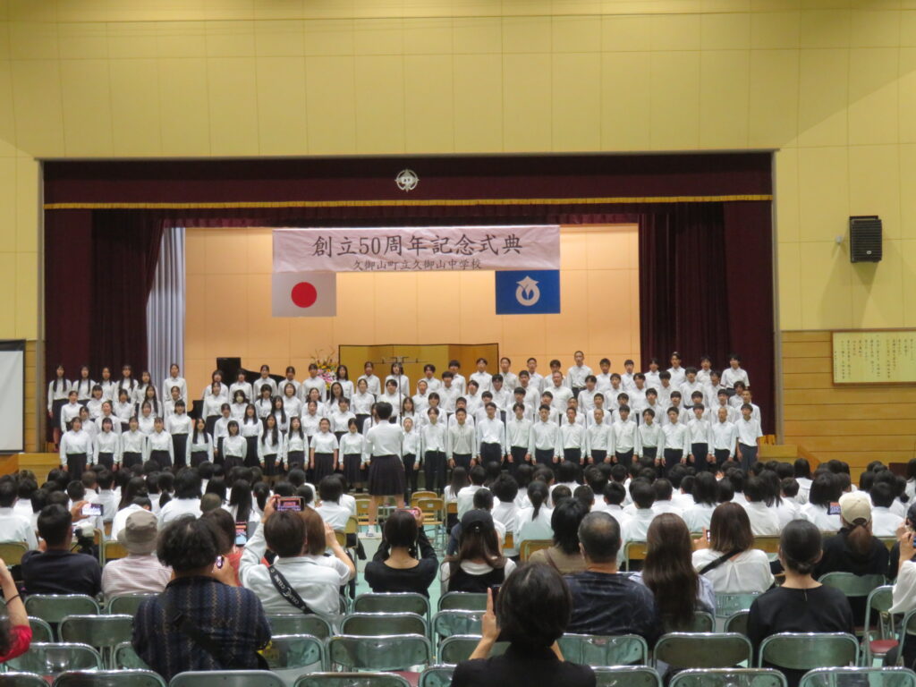 本校50年を振り返るスライドの上映、3年生の学年合唱、吹奏楽部の演奏等を行い、参列者全員で創立50周年を祝いました。