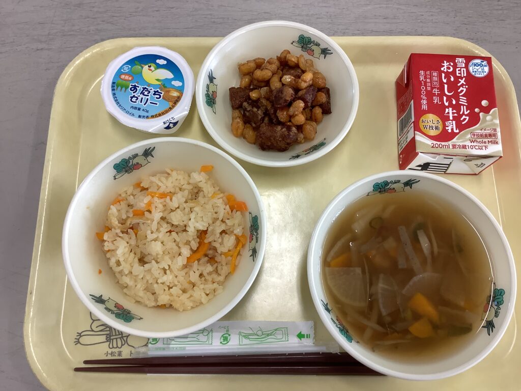 By Kumiyama-jhs2025年9月19日Category: 今日の給食 Post Views: 0 2025年9月19日(金) 毎月19日は食育の日【今月は四国地方】 みかんごはんかつおと大豆の揚げ煮さわさわすだちゼリー牛乳
