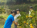 1・2年生が宮津市の岸田農園さんで、秋の自然を満喫する「みかん狩り体験」を行いました。子どもたちは元気いっぱいに農園へ出発!岸田農園の方からみかんの育て方や収穫のこつを教えていただき、いよいよみかん狩りスタートです。「このみかん、おっきい!」と、子どもたちは目を輝かせながら、みかんを収穫していました。自分の手で採ったみかんをその場で味わうと、「すごく甘い!」「おいしい!」と笑顔があふれていました。本当にありがとうございました