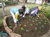 令和7年度1・2年生が地域の「さくらの会」のみなさんと一緒に、栗田駅周辺で花苗を植える活動「花いっぱい運動」を行いました。この活動は、地域の環境美化と栗田駅の利用促進を目的として年2回行われています。「さくらの会」のみなさんに優しく教えていただきながら、ビオラの花苗を丁寧に植えました。植えた花々は、これからの季節、栗田駅周辺を彩り、訪れる人々の心を和ませてくれることでしょう。
