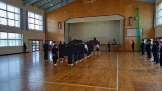 本日、令和7年度修了式を行いました。1年生、2年生の代表生徒が壇上で、修了証を受け取りました。