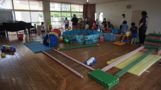 9月11日(木)くんだにこにこひろばがあり、2人のお友達が来てくれました。巧技台やトンネルなどを組み合わせたり、ボールを使ったりして楽しみました。次は10月16日(木)に予定しています。