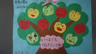 9月17日(水)安寿の里の敬老会にお邪魔してきました。「とんぼのめがね」などの季節の歌を歌ったり、合奏をしたりして聞いていただきました。最後にみんなが作ったプレゼントを受け取っていただきました。