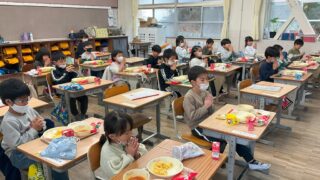 最近の様子 クリスマスメニュー 本日の給食は、クリスマスメニュー!!キャロットピラフ、トマトスープ、ローストチキン、いちごのカップケーキ、牛乳で、どれも美味しかったですね。2学期の給食も、あと3回となりました! 2025.12.17 最近の様子