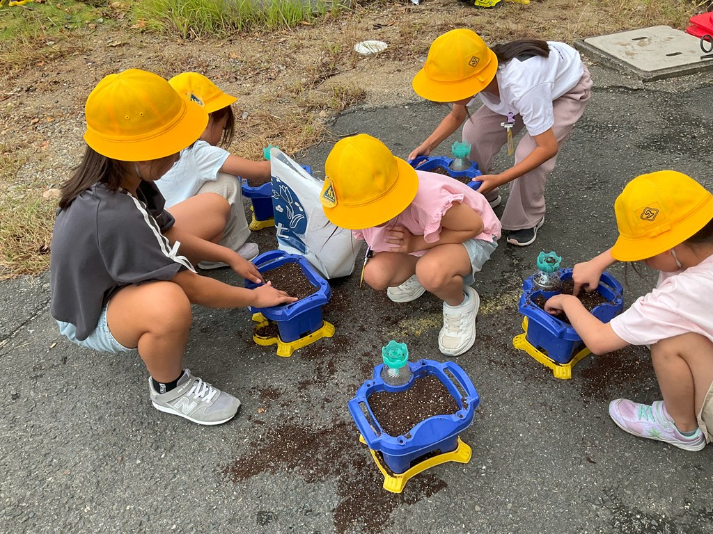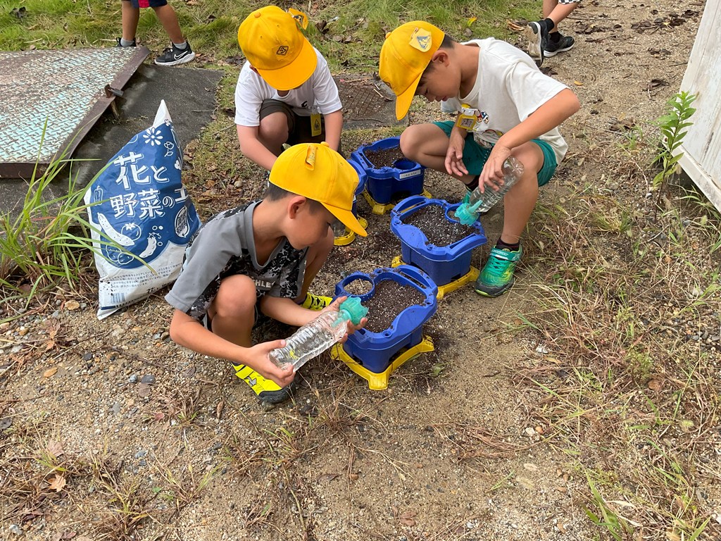 本日2校時、2年生が生活科の時間に「はつか大根」の種を蒔きました。植木鉢に土を入れ、軽く穴を掘って種を蒔き、水をやるところまで取り組んでいました。みんな、「はつか大根」の収穫までがんばって育てて下さい!(「さくらんぼ」という名の「はつか大根」です。お間違えなく!)