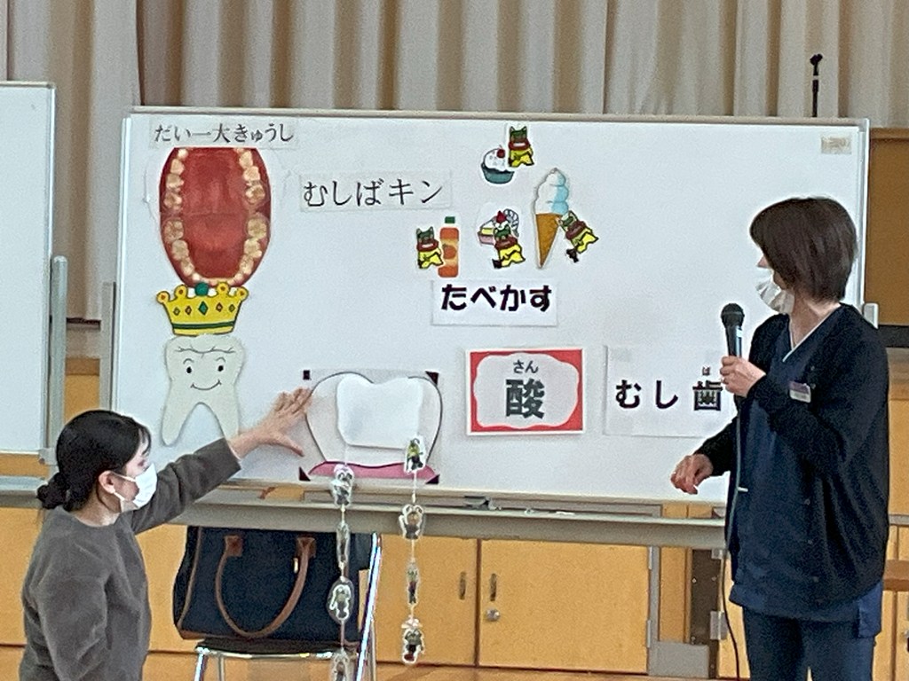 歯磨き巡回指導 Twitter Facebook はてブ Pocket LINE コピー 2025.12.11 本日3校時、歯科衛生士さんにお越しいただき、1年生が歯磨き巡回指導を受けました。乳歯と永久歯、虫歯になる原因や歯磨きの仕方など、たくさんのことを教えていただきました。保護者の方と一緒に、「だい一大きゅうし」を見つけてくださいね。 Post Views: 49
