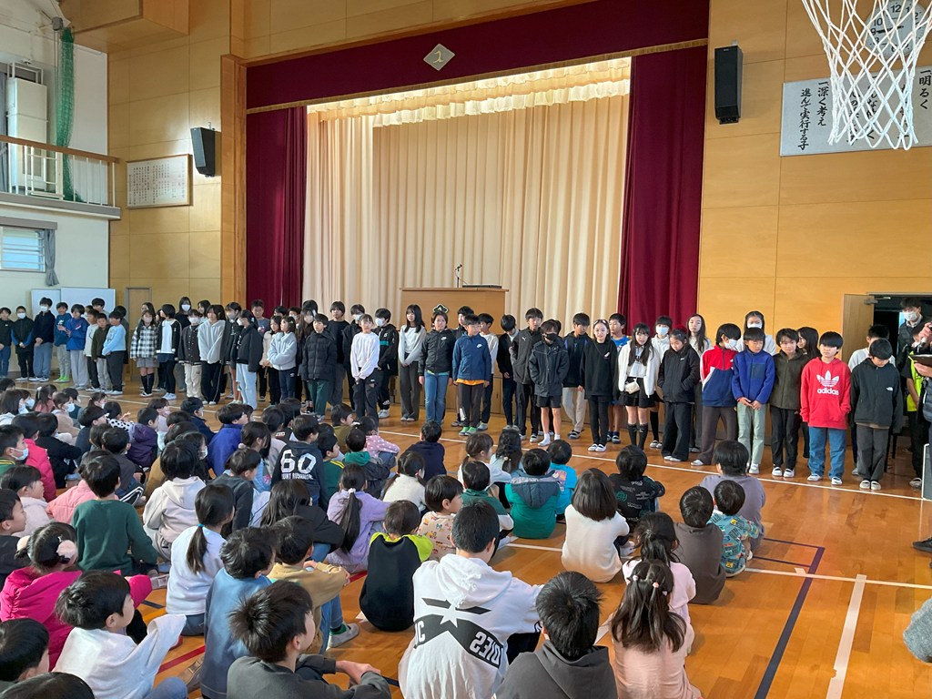 本日、第2学期終業式を無事に迎えることができました。式では、校長先生の話、冬休みの過ごし方についての話がありました。また、伝達表彰(市駅伝競走(持久走)大会・図書館賞など)も行いました。明日から冬休みが始まりますが、元気に過ごし、いろいろな体験をして下さい。保護者の皆様、地域の皆様、2学期も大変お世話になり、ありがとうございました。3学期も、どうぞよろしくお願いします。それでは、良いお年をお迎え下さい!