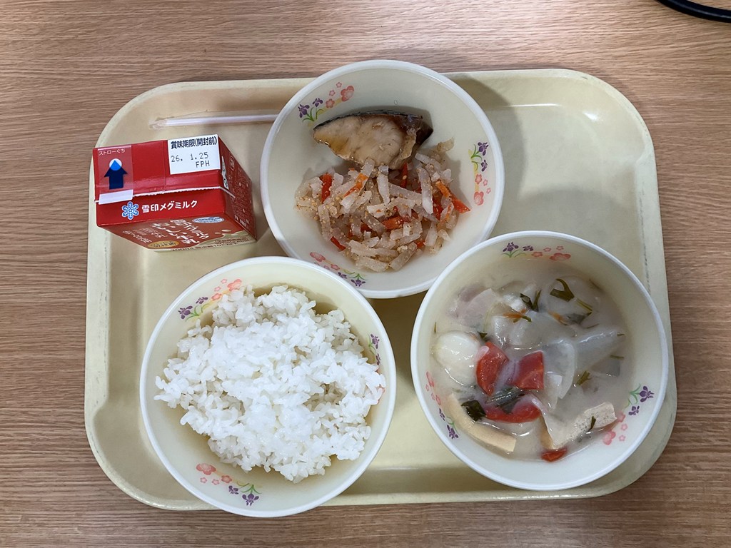 給食 Twitter Facebook はてブ Pocket LINE コピー 2026.01.13 本日より、3学期の給食が始まりました。メニューは、ご飯、雑煮、ぶりの照り焼き、紅白なます、牛乳(お正月献立)で、美味しくいただきました!おもちは、いくつ入ってたかな?写真は、2年生の様子です。 Post Views: 14