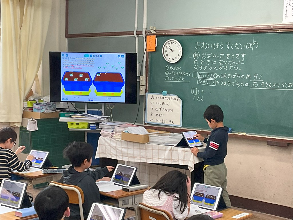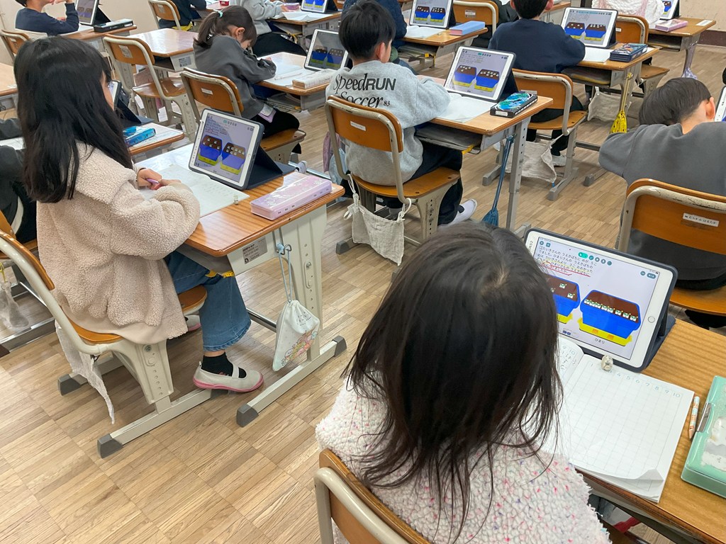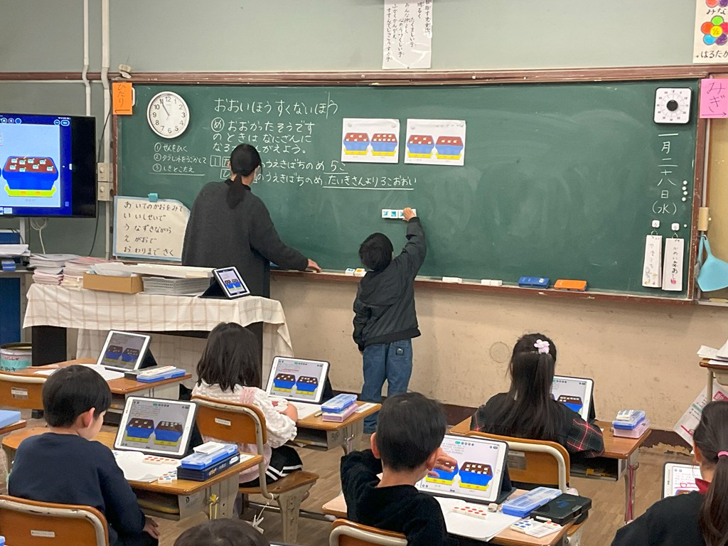 授業研 Twitter Facebook はてブ Pocket LINE コピー 2026.01.28 本日3校時、1年1組において算数科の授業研究会を実施しました。タブレット端末や数図ブロックを使って、この問題は、たし算するのか?ひき算するのか?について、一生懸命考えていました。 Post Views: 10