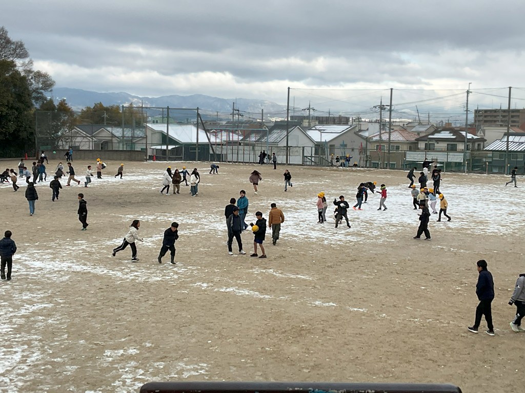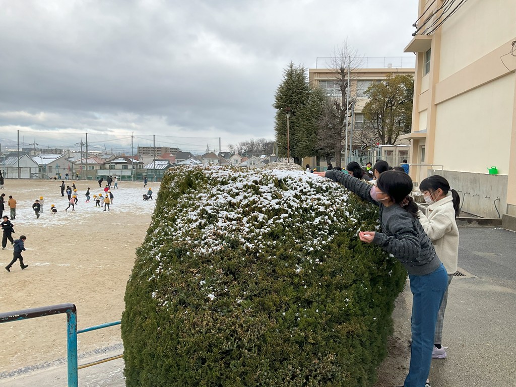 今朝は、昨夜に積もった雪と冷え込みにより、道路がアイスバーンになり、歩きにくい中での登校となりましたね。しかし、グラウンドに積もったふわふわの雪を踏みしめ登校した人は、気持ちよかったのではないでしょうか?そんな雪も中間休みには溶け始め、雪合戦が厳しくなりましたが、雪をかき集め投げていましたね。
