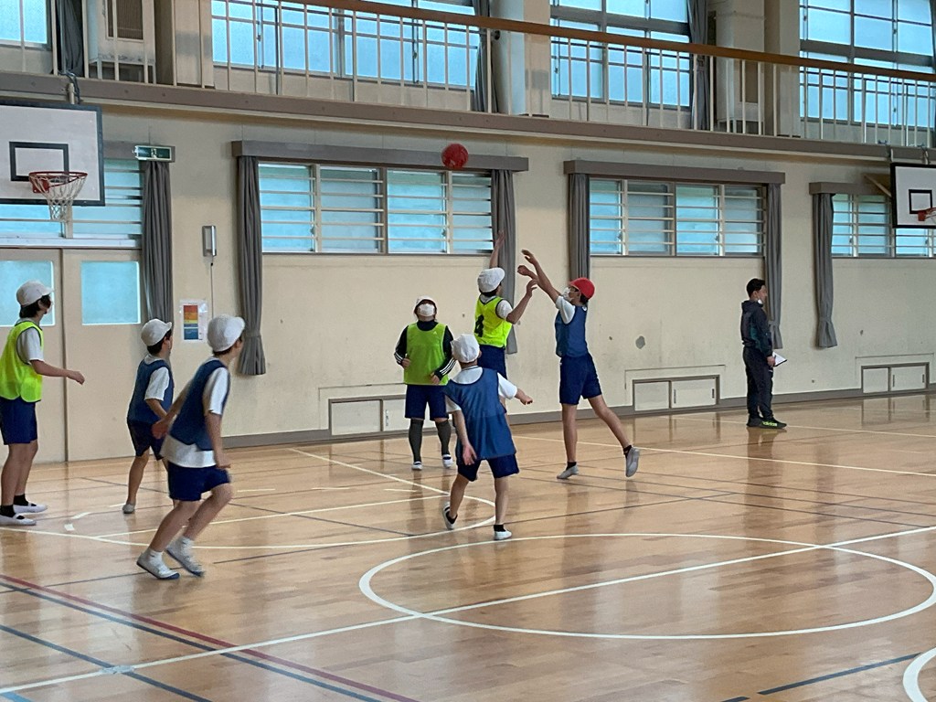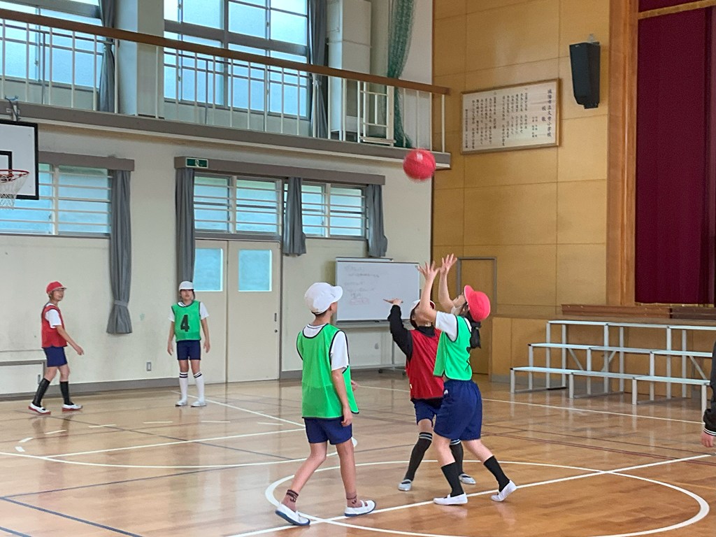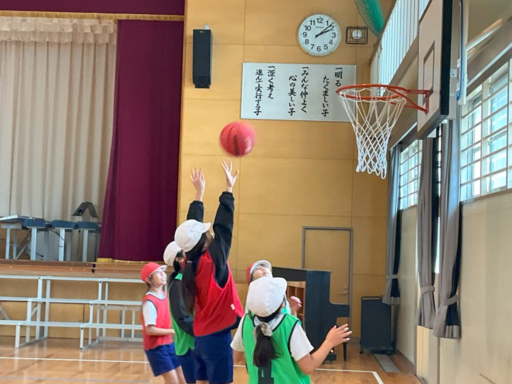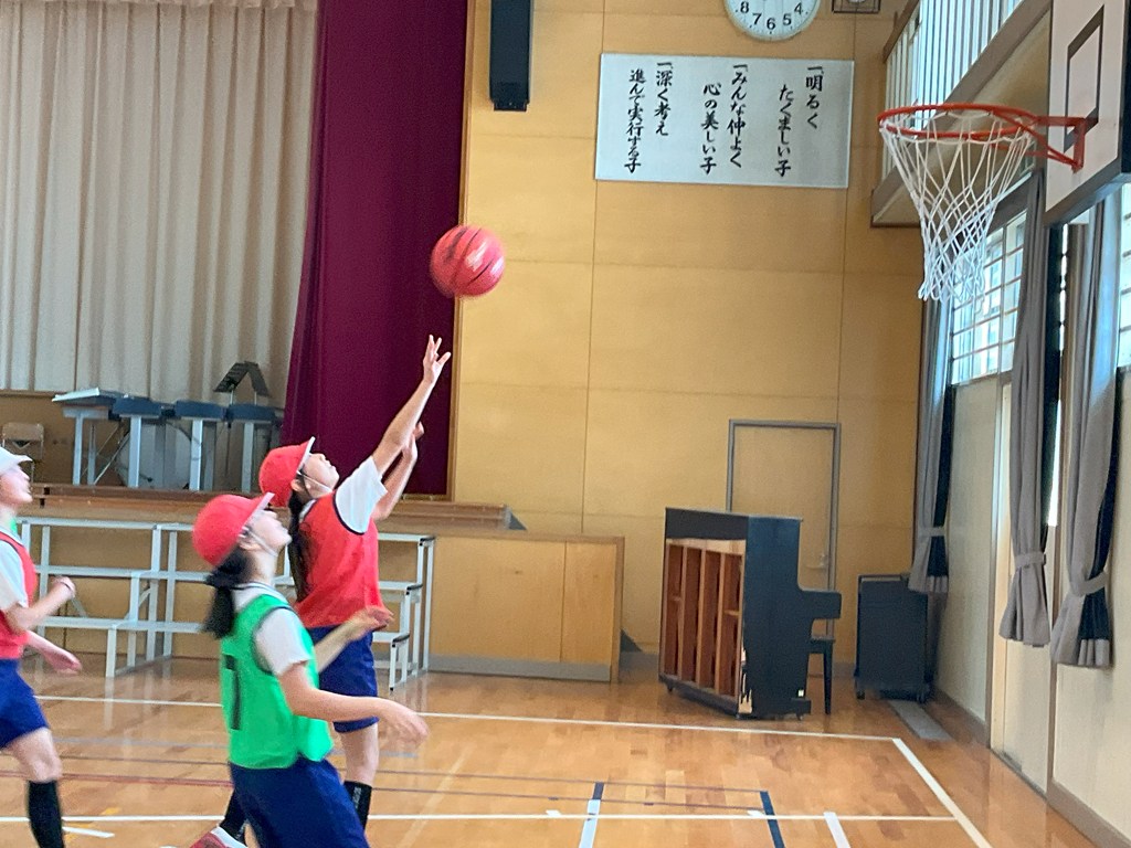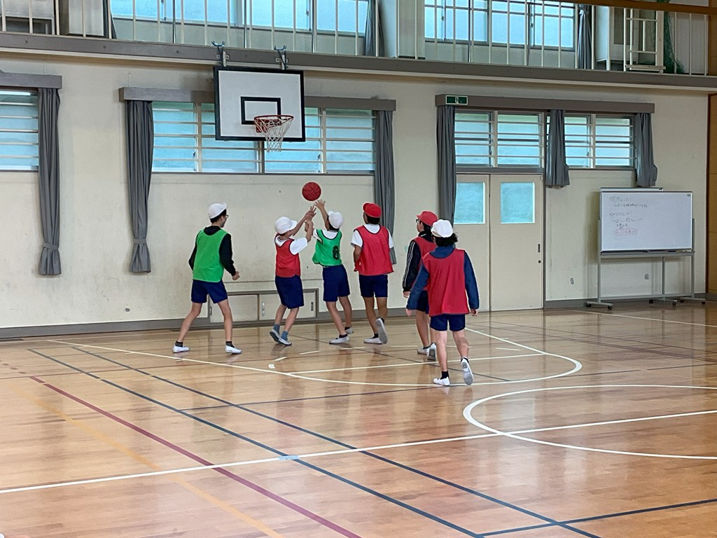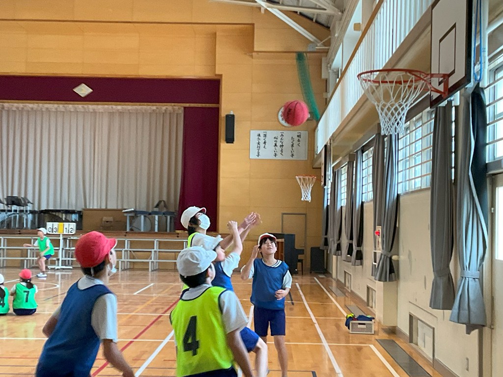 本日5校時、6年1組が体育科の授業でバスケットボールの試合をしていました。上手にシュートが打てたと思っても、リングに嫌われたり、ボードに当たったりと、なかなか得点に結びついていないシーンもありましたが、応援がすごかったですね!これぞ、チームワーク!