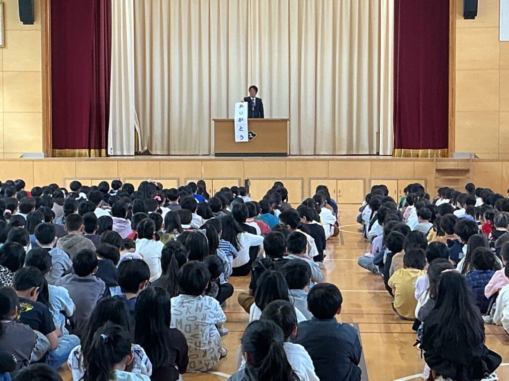 始業式では、「ありがとう」と「一生懸命」という言葉を大切にしながら、互いに高め合い、思いやりあふれる学校をみんなで築いていこうと話しました。