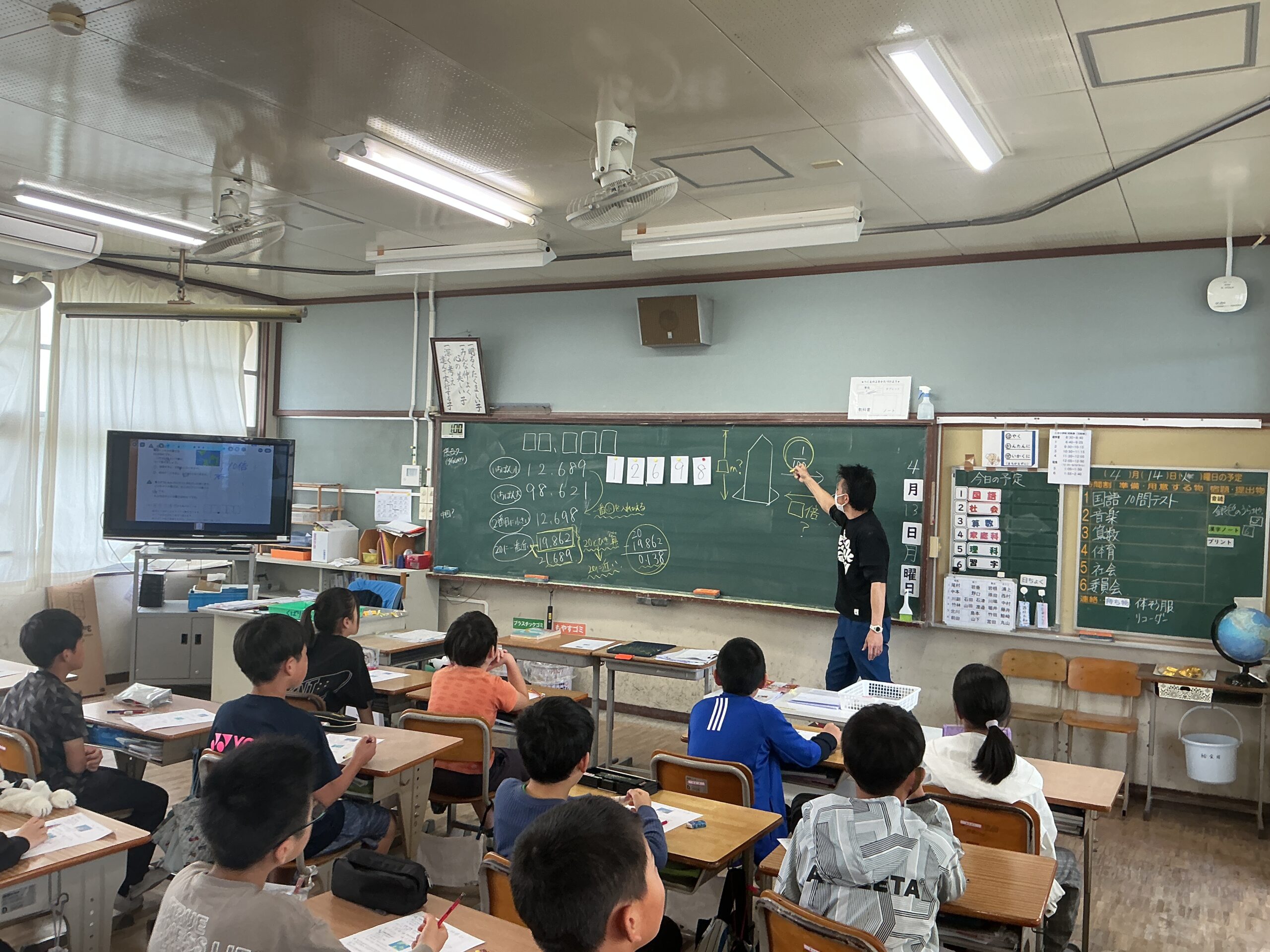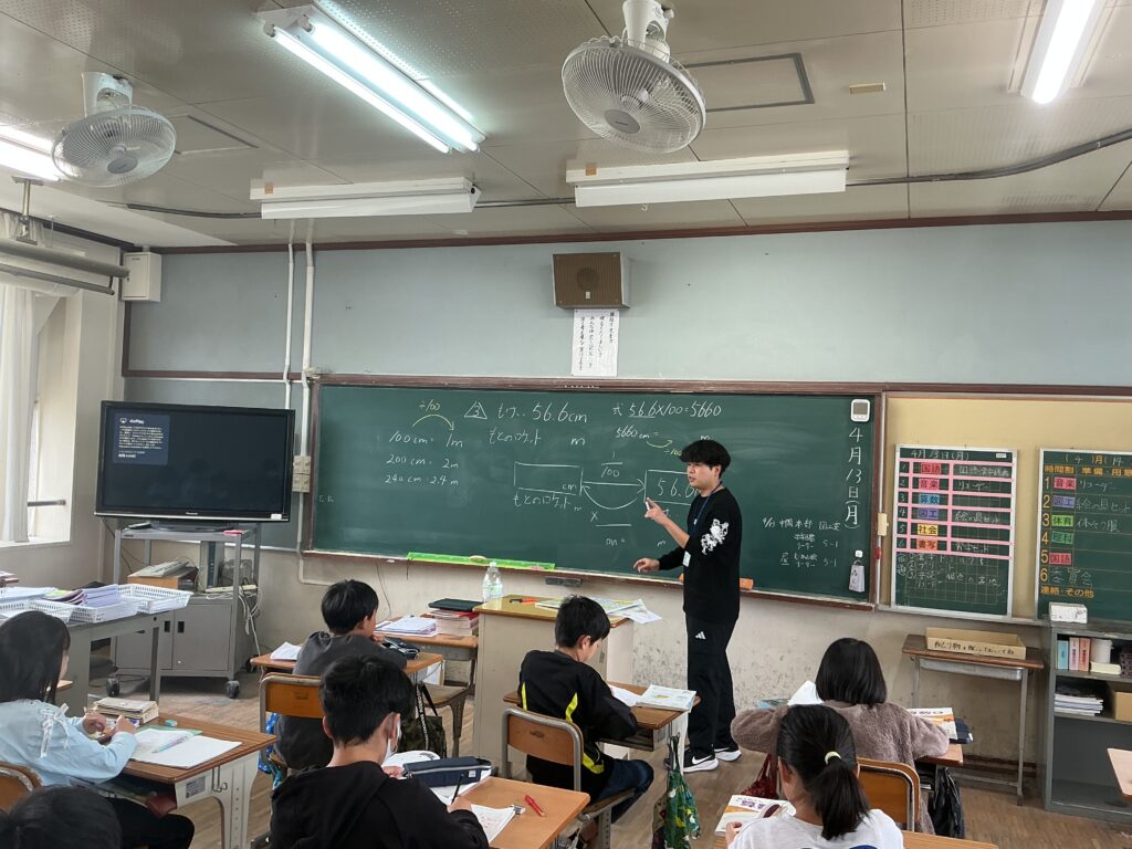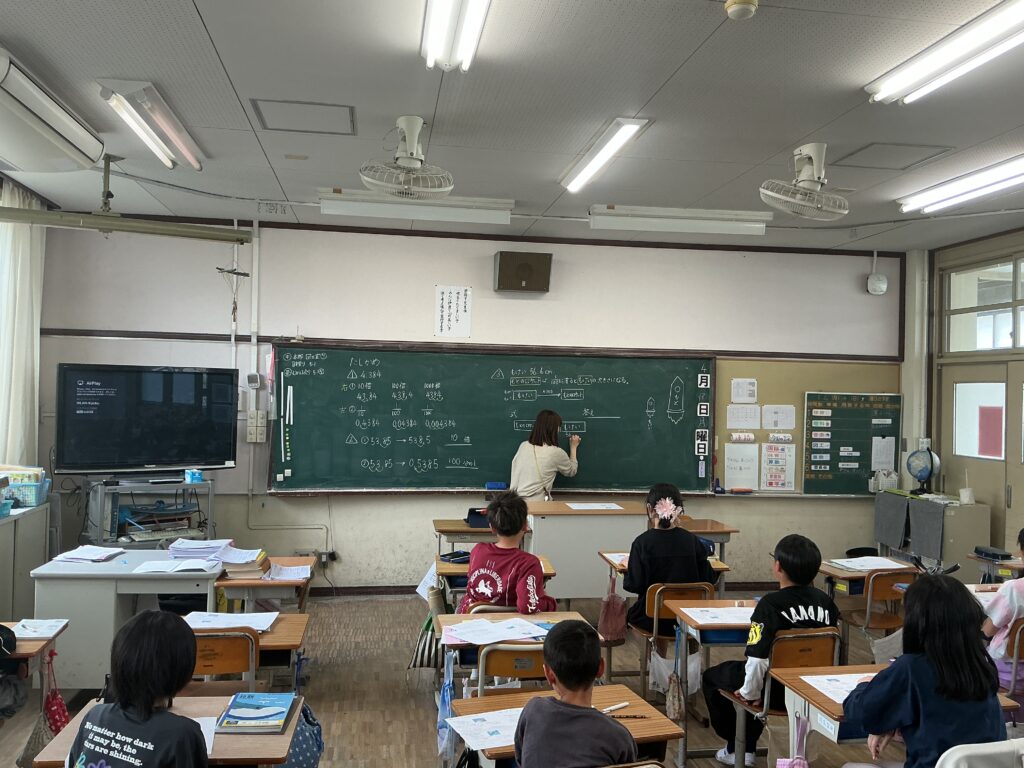 5年生 算数「整数と小数」 Twitter Facebook はてブ Pocket LINE コピー 2026.04.13 5年生の算数「整数と小数」の授業で、ロケットを教材に用いながら、100分の1倍や100倍といった数の大きさの変化について考えました。具体的なイメージを通して、整数と小数の関係を理解することをねらいとしました。 Post Views: 24