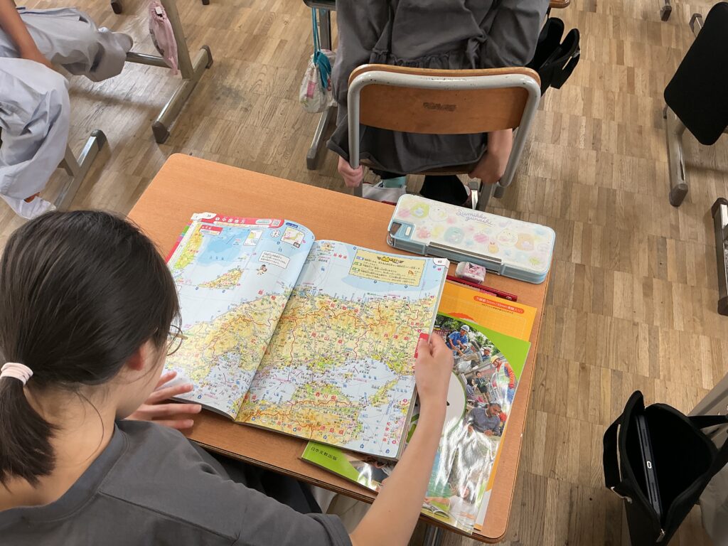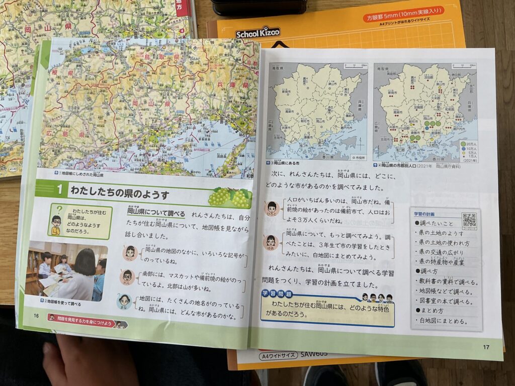 社会科の学習のようす(4年) Twitter Facebook はてブ Pocket LINE コピー 2026.04.22 4年生の社会科では、岡山県について調べる学習を行っています。地図帳を使って岡山県の位置を確かめたり、教科書の資料から人口を調べたりしながら学習を進めています。さまざまな資料を活用し、必要な情報を自分で見つけ出す力を育てています。 Post Views: 17