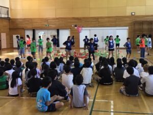 赤ブロック集会がありました。 日誌 2025.09.22 先週の青ブロックに続いて、今日の昼休みには赤ブロックのブロック集会がありました。今日は初めてブロックのみんなが集まって、ブロック競技について知る日。競技リーダーさんが手本として見せてくれた「チェッコリ玉入れ」を、今度のブロック集会からみんなで練習していきます。 Post Views: 145