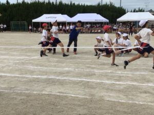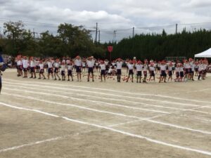 まさしく運動会日和となった10月11日、久津川小学校の運動会を実施しました。開会式、応援、徒競走、ダンシング玉入れ(全校競技)、団体演技、そして閉会式。半日の中にぎゅっと内容が詰まった運動会でしたが、子どもたちの頑張りが溢れんばかりでした。