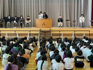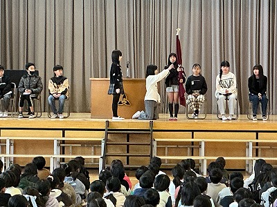 今年度最後の全校集会 日誌 2026.03.13 3月13日の朝、全校のみんなが体育館に集まって、今年度最後の全校集会を行いました。最後ということで、1年の締めくくりとして、各委員会の代表が自分たちの活動の振り返りを発表しました。そして、最後には6年生の本部役員から5年生の本部役員へ、校旗のバトンタッチ。 6年生の卒業が近づいていることを、あらためて感じさせられました。 Post Views: 17