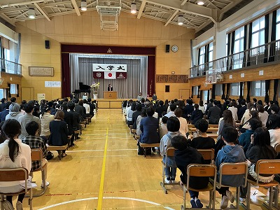 入学式がありました。 日誌 2026.04.07 4月7日に入学式があり、1年生47名が久津川小学校の仲間になりました。 初めて出会う担任の先生、同じクラスの友達、そして大きな体育館。初めてのことが多くて、緊張した面持ちの子どもたちもいましたが、担任の先生から名前を呼ばれると、みんな大きな声で「はい」と返事ができました。その後の話もしっかり聞くことができ、記念写真もバッチリ撮れて、素敵な入学式になりました。 明日から、いよいよ小学校生活が本格的に始まります。みんな元気に登校し、早く小学校生活に慣れてくれたらいいなと思います。 Post Views: 20