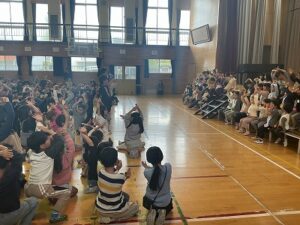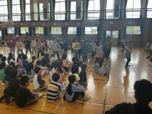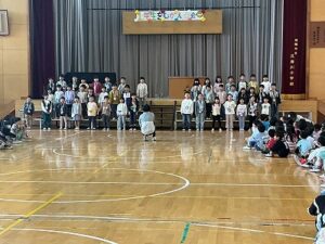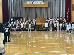 1年生を迎える会がありました。 日誌 2026.04.24 1年生が入学して3週間たった4月24日、「1年生を迎える会」がありました。 この日を楽しみにしていた1年生は、2年生が作ってくれたペンダントを胸に、6年生と一緒に入場。全員で「エビーバ」の歌を大合唱した後、各学年が工夫を凝らして1年生に向けて出し物をしました。そして、1年生もお礼の出し物として覚えたての「校歌」を大合唱。 みんなで、あたたかく1年生を迎える気持ちがあふれた、とても素敵な会になりました。 Post Views: 32