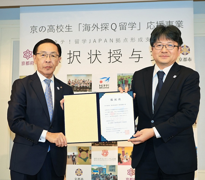 京都府が、トビタテ!留学JAPAN「拠点形成支援事業」に採択され、12月23日の採択状授与式において、文部科学省から西脇京都府知事に採択状が授与されました。