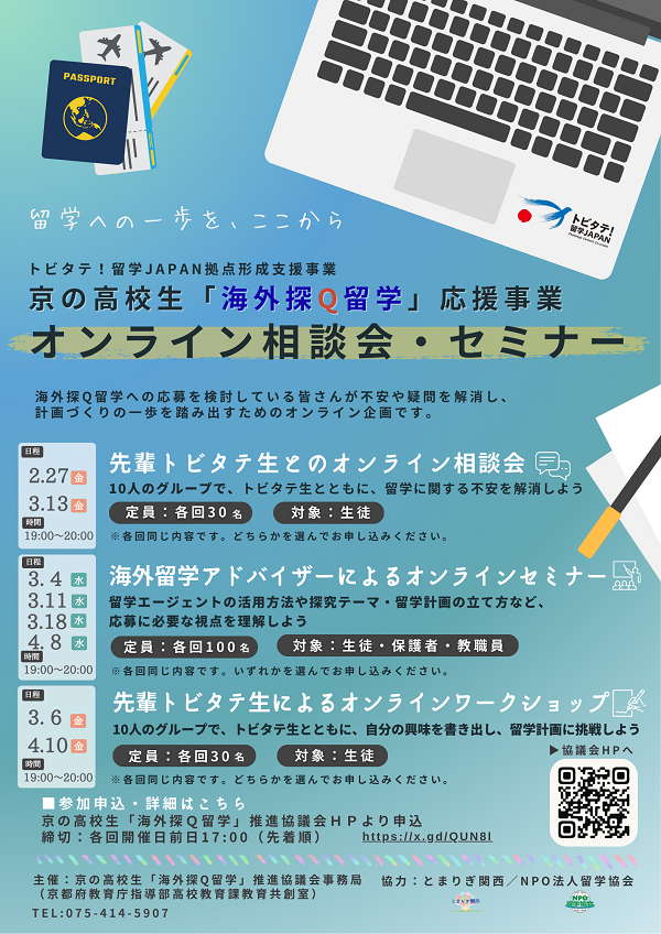 海外留学アドバイザーによるオンラインセミナー(3/4,3/11,3/18,4/8)