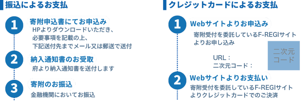 寄附受付を委託しているF-REGIサイトよりお申込みをお願いします。