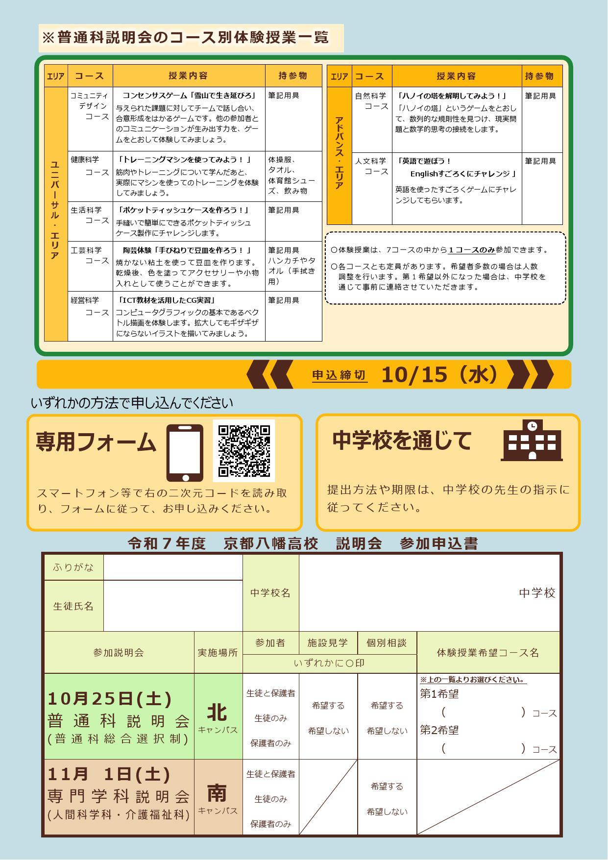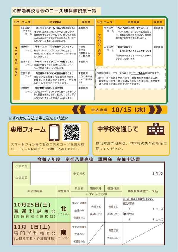 参加を希望される場合は、本校の北キャンパスUD推進部(075-981-3508)までお電話でお申し込みください。