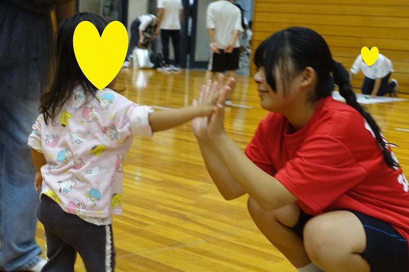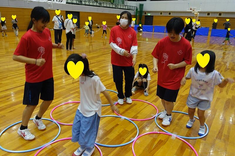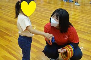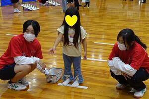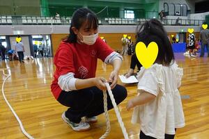 10月19日(日)、八幡市民スポーツ公園、市民体育館で「やわたスポーツカーニバル2025」(主催:八幡市・八幡市教育委員会・八幡市スポーツ協会)が開催され、部員14名が参加しました。ACP(アクティブ・チャイルド・プログラム)のスタッフとして、子どもたちと運動遊びをとおして、楽しく交流しました。特に、子どもたちと綱引きを何度もしたので、予想以上に疲れたと思いますが、笑顔が溢れる交流となりました。