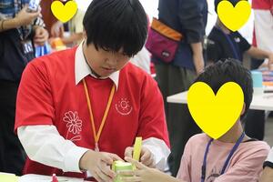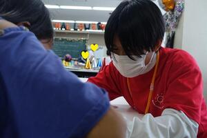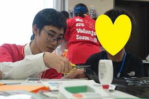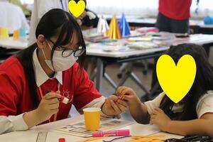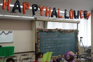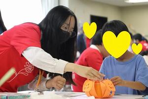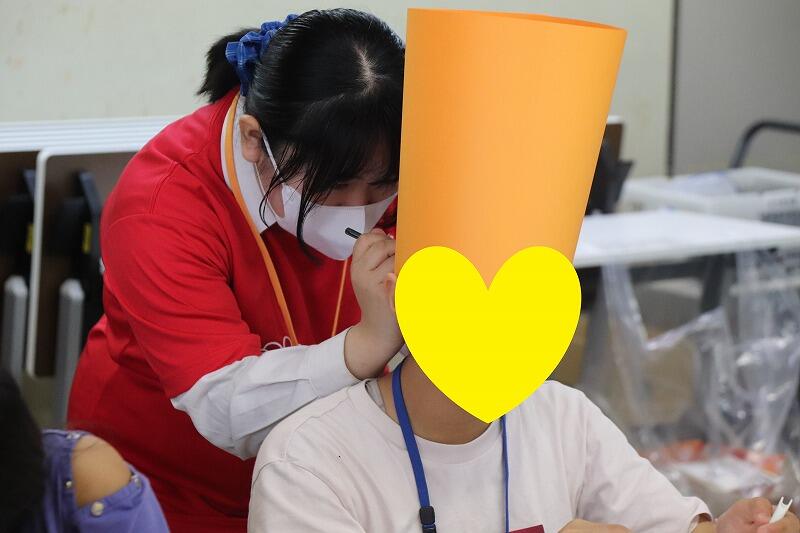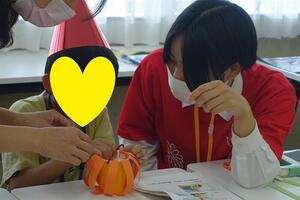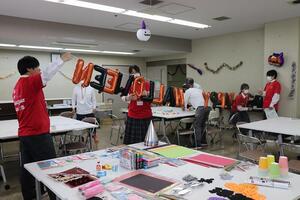 10月18日(土)午後、「第2回八幡市ふれあい交流事業~ハロウィンお楽しみ会~」(主催:八幡市教育委員会)に部員10名が参加しました。12:45からの会場準備、パフォーマンスのリハーサルを終え、14:00からハロウィンお楽しみ会がスタートしました。始めは子どもたちと一緒に、ハロウィンに関するものづくりを楽しみました。見本を参考に思考錯誤しながら、帽子やマント、カボチャなどの飾りを一生懸命作りました。