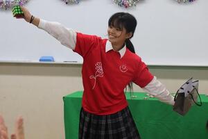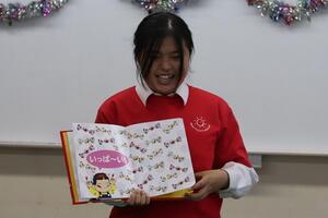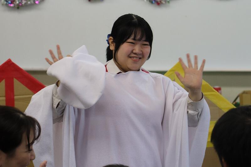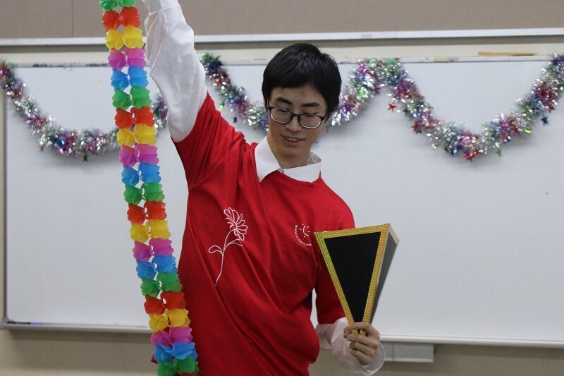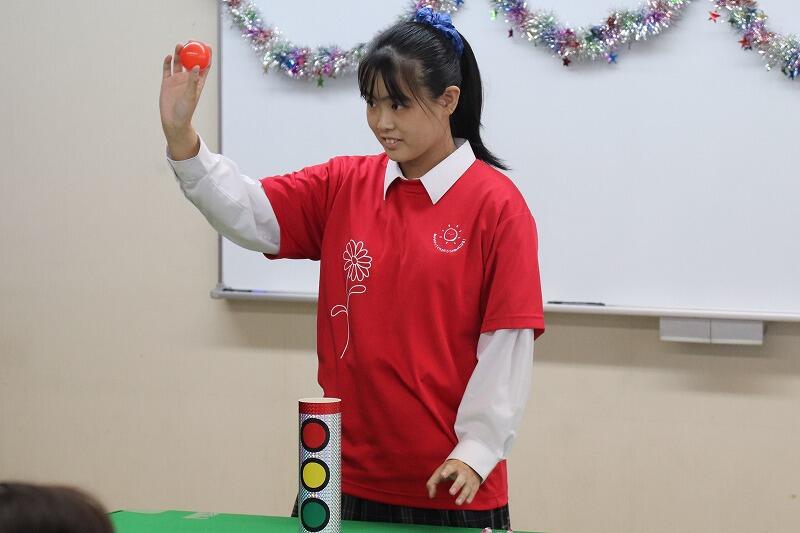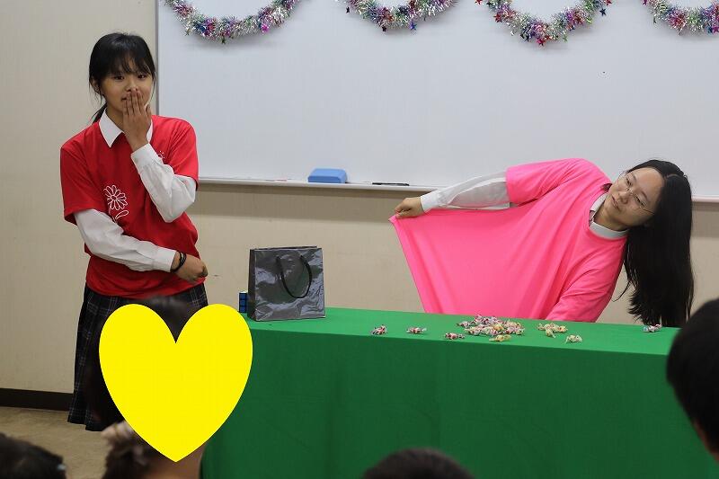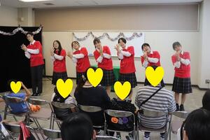 ハロウィンに関するものづくりの後、「マジック&手話歌♪」を発表しました。まずは、手話歌♪「パプリカ」、「あいうえおんがく」、その後、得意のマジックを11個披露しました。最後は、ちょボラーマン(八幡市社会福祉協議会非公式キャラクター)にも来てもらい、手話歌♪「世界に一つだけの花」を発表しました。子どもたちだけではなく参加者全員に楽しんでいただいたことが自信につながり、今後のボランティア活動への励みにもなりました。