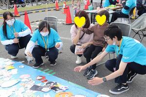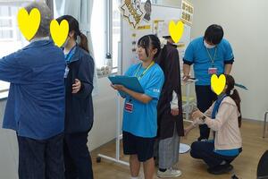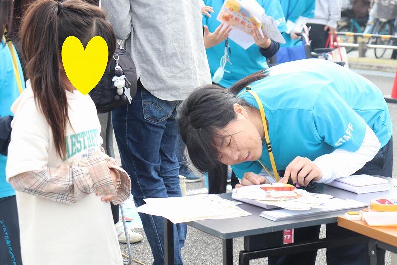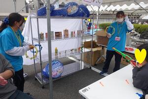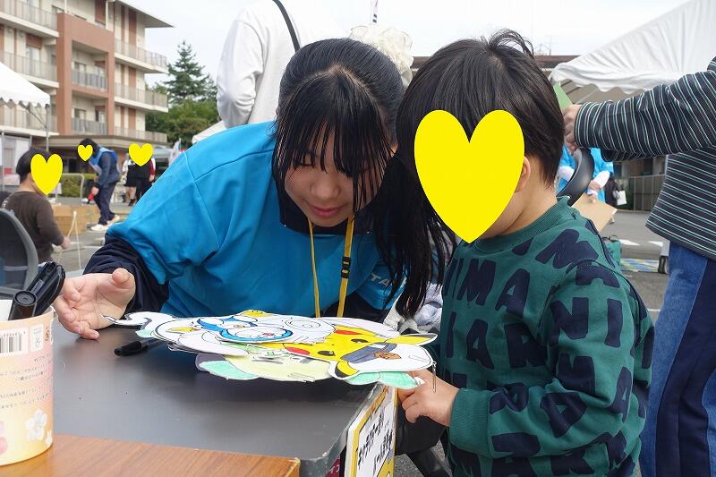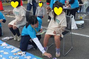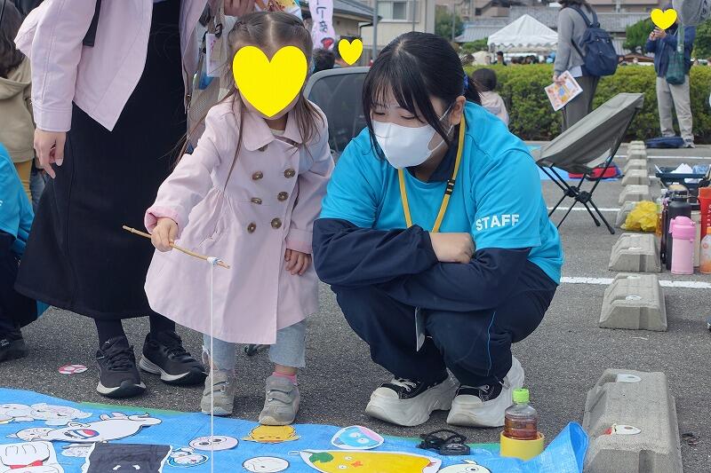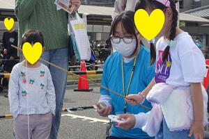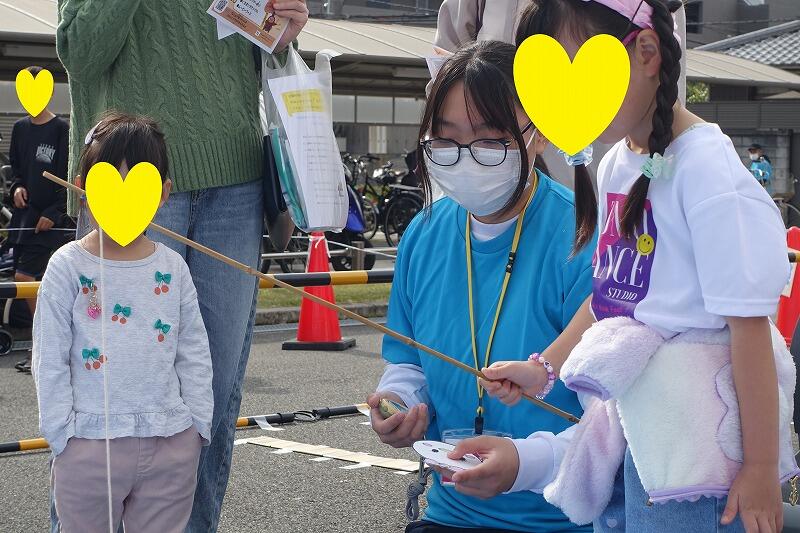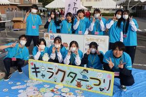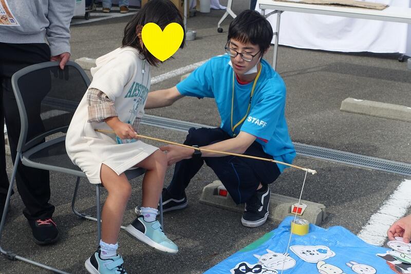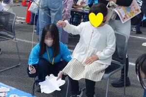 11月2日(日)、京都リハビリテーション病院駐車場で開催された、京都清水メディケアシステム主催「しみずの郷『オータムフェスタ2025』」に、部員13名が参加しました。当日は、わくわく介護体験ブースで、キャラクター釣り、転がしビンゴを企画、運営しました。初めての参加で不安もありましたが、たくさんの子どもたちが笑顔をみせてくれたので、楽しい1日になりました。部員内でシフトを組んで、他のブース(身体計測・射的・防災・キッズコーナー)のお手伝いもさせていただきました。