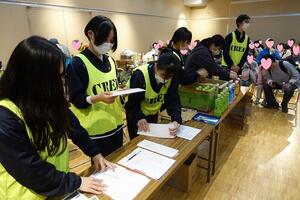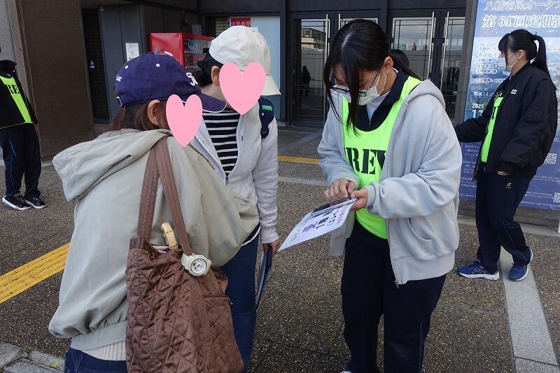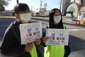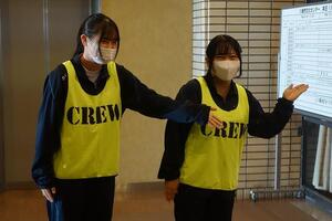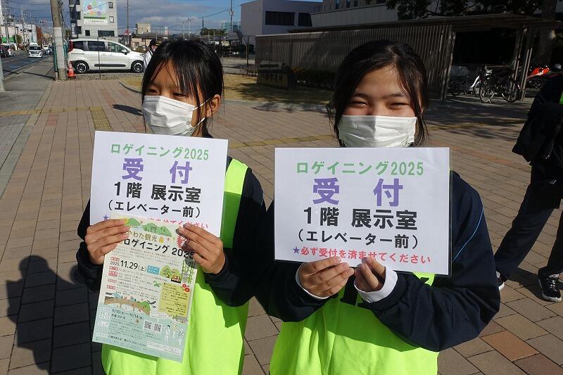 11月29日(土)、「京都やわた観光 まちめぐりロゲイニング2025」(主催:八幡市商工会)が開催され、運営ボランティアとしてボランティア部(南)の14名が参加しました。八幡市文化センター展示室の会場設営から始まり、誘導、受付、アプリの説明後、開会式がありロゲイニングがスタートしました。部員たちも少しだけロゲイニングを体験し、フィニッシュの対応と閉会式の補助をしました。