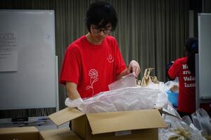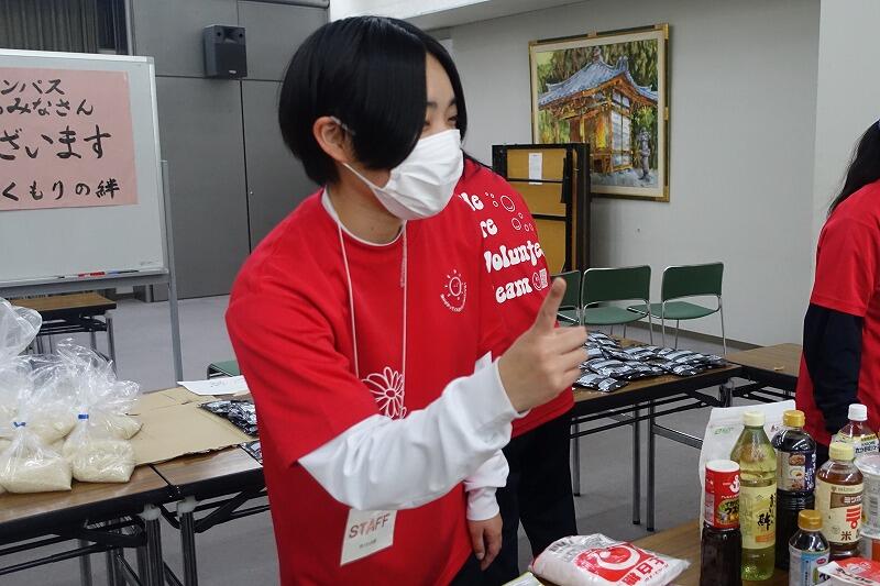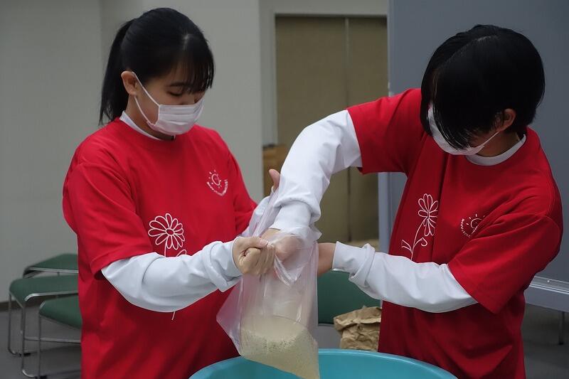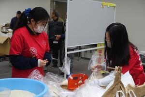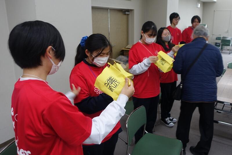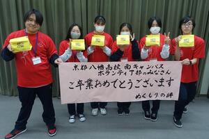 2月28日(土)午前、京田辺市立社会福祉センターで「第38回食料支援&生活相談会」(主催:食料支援ボランティア団体「ぬくもりの絆」)が開催され、3年生の部員6名が参加しました。午前9時から準備を始め、10時から食料を配布し、90名余りの方に食料を届けました。令和5年度からこのボランティアに参加しており、今回で14回目の参加となりました。今回は、学年末考査前ということもあり1、2年生の参加は見合わせましたが、卒業式の翌日にもかかわらず3年生が参加してくれました。会場には卒業のお祝いメッセージも掲示していただき、ぬくもりの絆の皆様に感謝です。