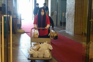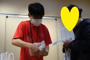 3月22日(日)午前、八幡市文化センター展示室で実施された「第19回くらしおうえん食材支援プロジェクト」【略称:食プロやわた】(主催:食プロやわた実行委員会)に部員5名が参加しました。このプロジェクトは、物価高騰等でお困りの方を応援するボランティアの取組で、お米や缶詰、レトルト食品、カップ麺、日用品などを年4回、無料で配布されています。配布時間の90分前から並ばれた方もいらっしゃった中で、今回は80名余りの方に食材等を手渡しました。各担当場所で積極的かつ丁寧に声掛けをする部員の姿がたくさん見られました。