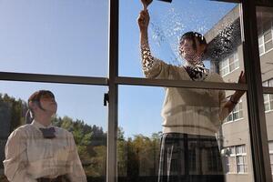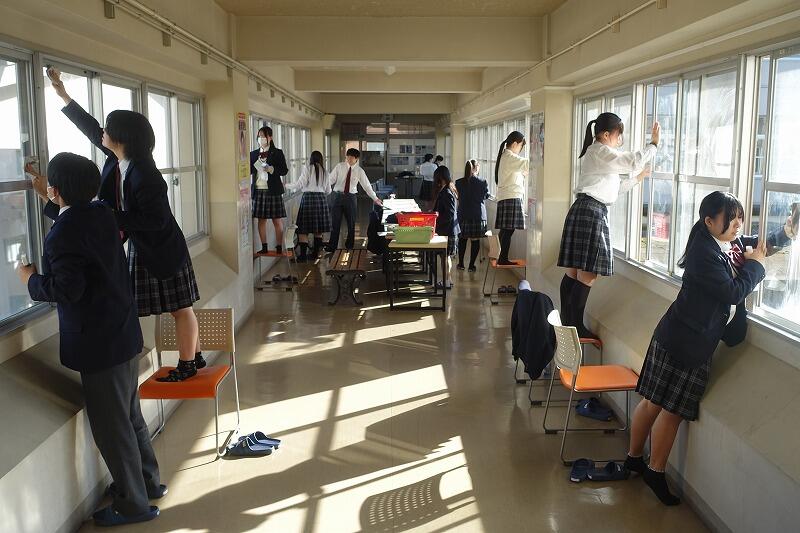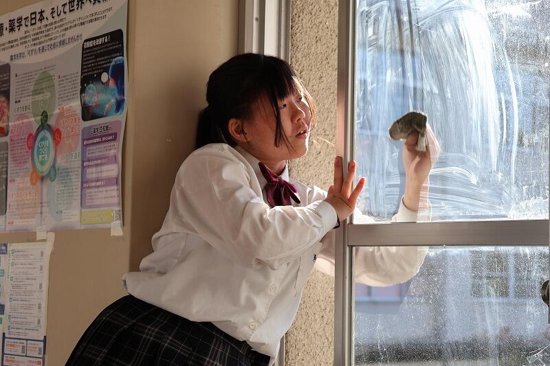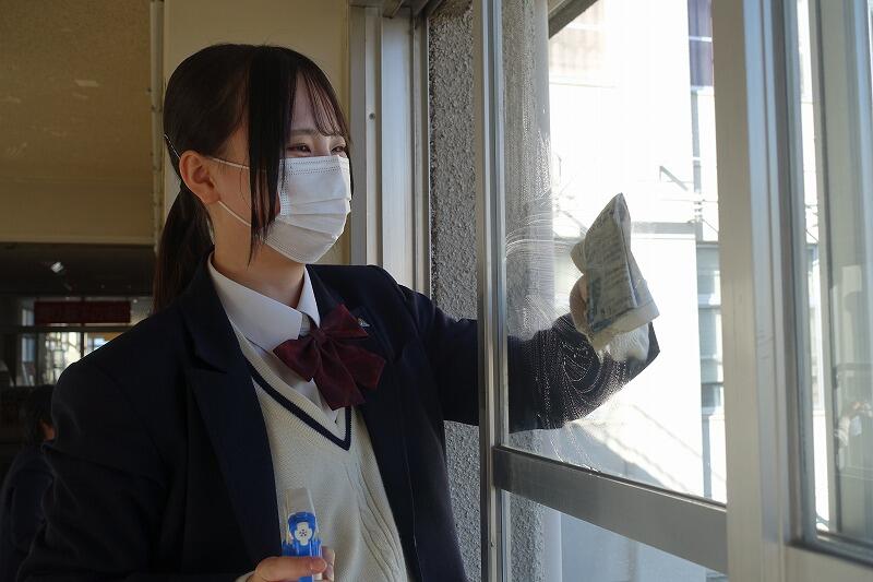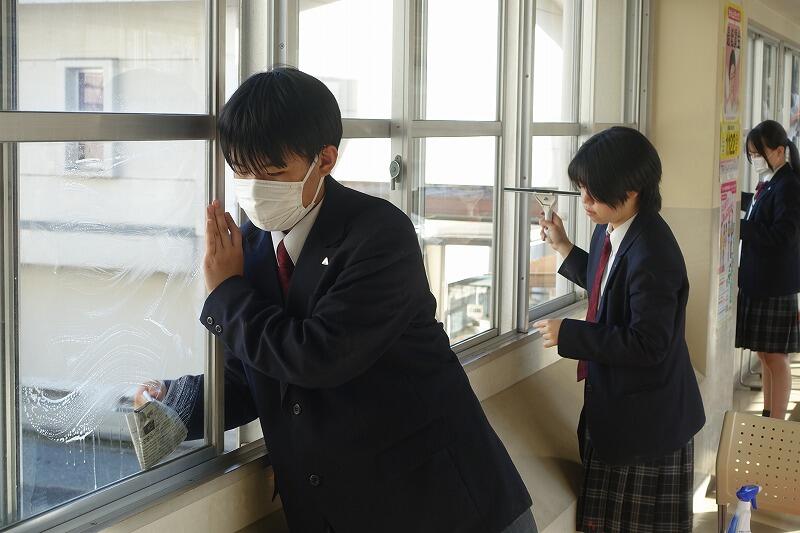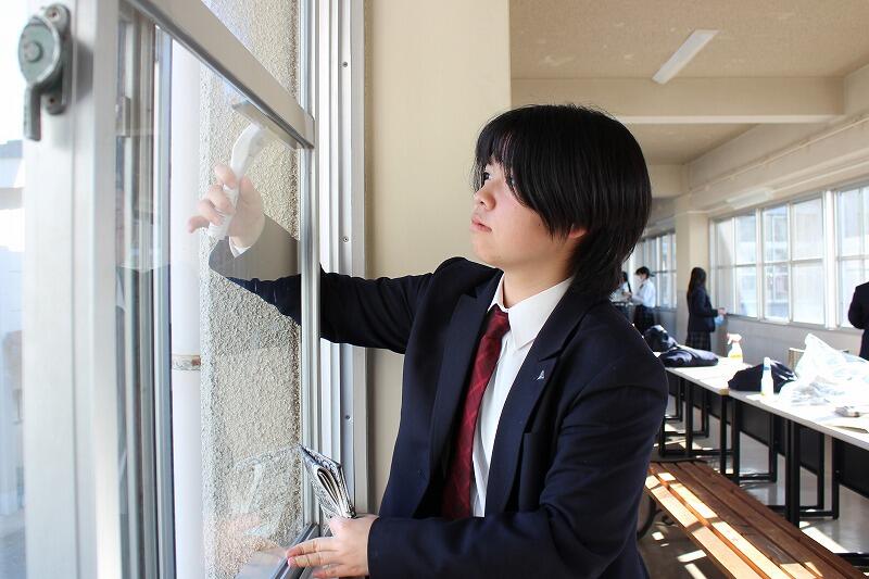 4月16日(木)、本年度初の部活動は、ミーティングの後に毎年恒例の窓拭きをしました。汚れがひどく、苦戦しながらも新聞紙やガラスワイパーを使って丁寧に磨きました。本年度、ボランティア部(南)は、3年生8名、2年生5名で始動しました。